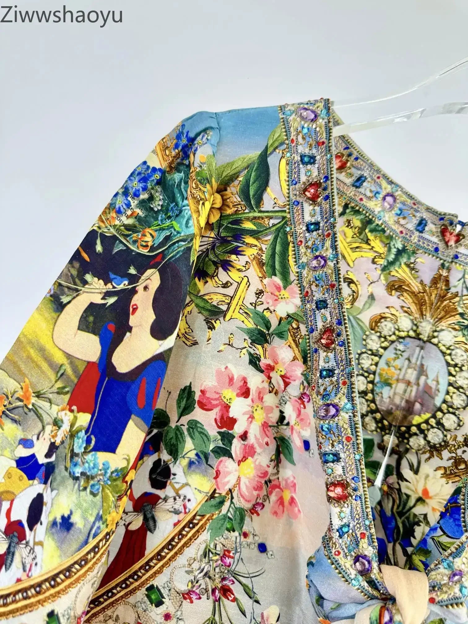 High Quality Autumn Women Fashion Runway Designer Silk Linen Beaded