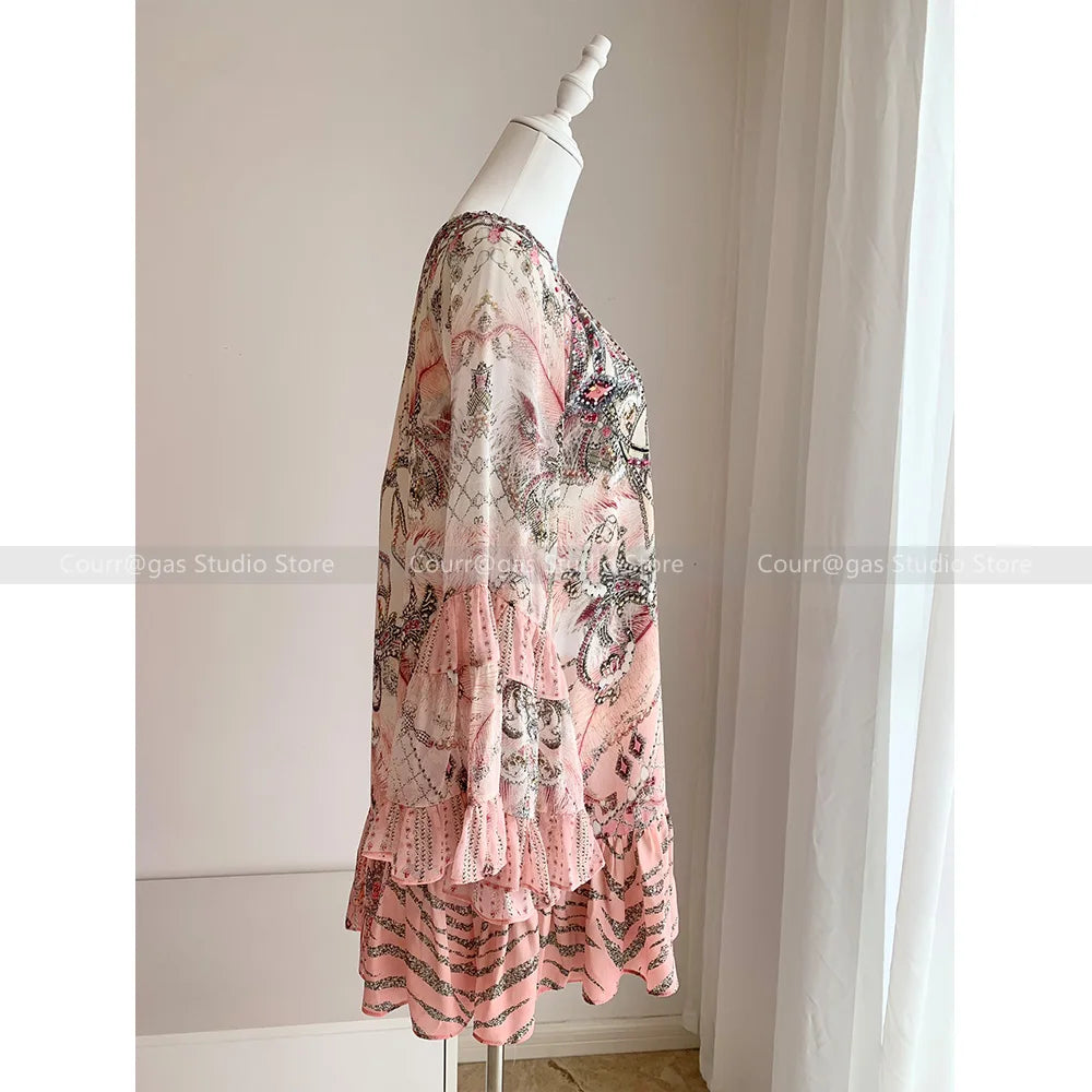 Jeweled Designer Dress Crystals Australian niche off the shoulder pink